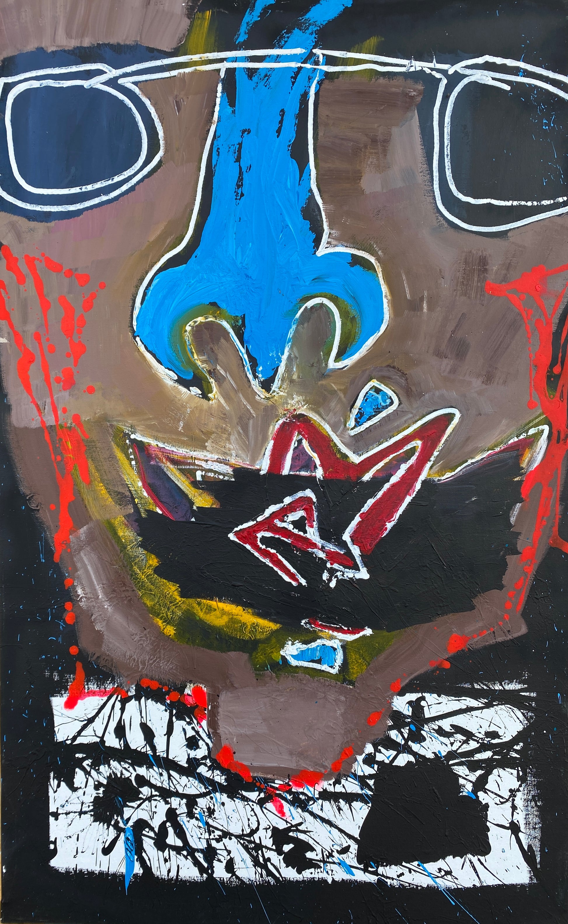This Globe Head measures 98,5cm x 144cm and is made with acrylic paint. As of now it has the HHR signature on the backside and not on the front as it was made some years back, before I started incorporating the HHR in all drawings and paintings. Should a potential buyer like that I incorporate the signature I’ll be happy to!