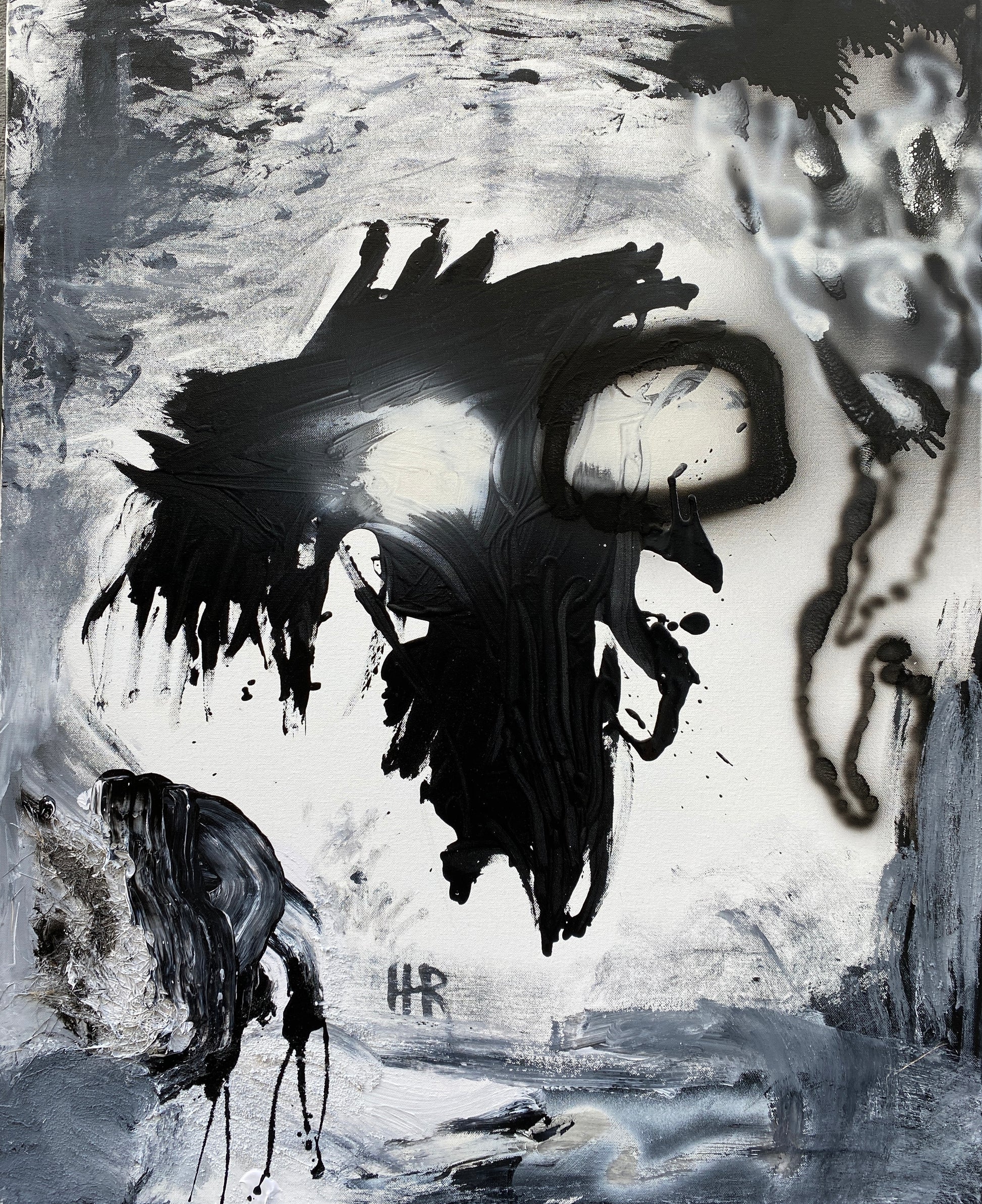 The measurements on this painting are 80cm x 100cm and it is made with acrylic paint and spray paint. It was done to Earthmotion (10:41 min) which is a piece of poetry and music done by Abèling Raastoff (poetry) and Philip Halloun (beats) back in 2010 that I have made most of the paintings listening to through the years.