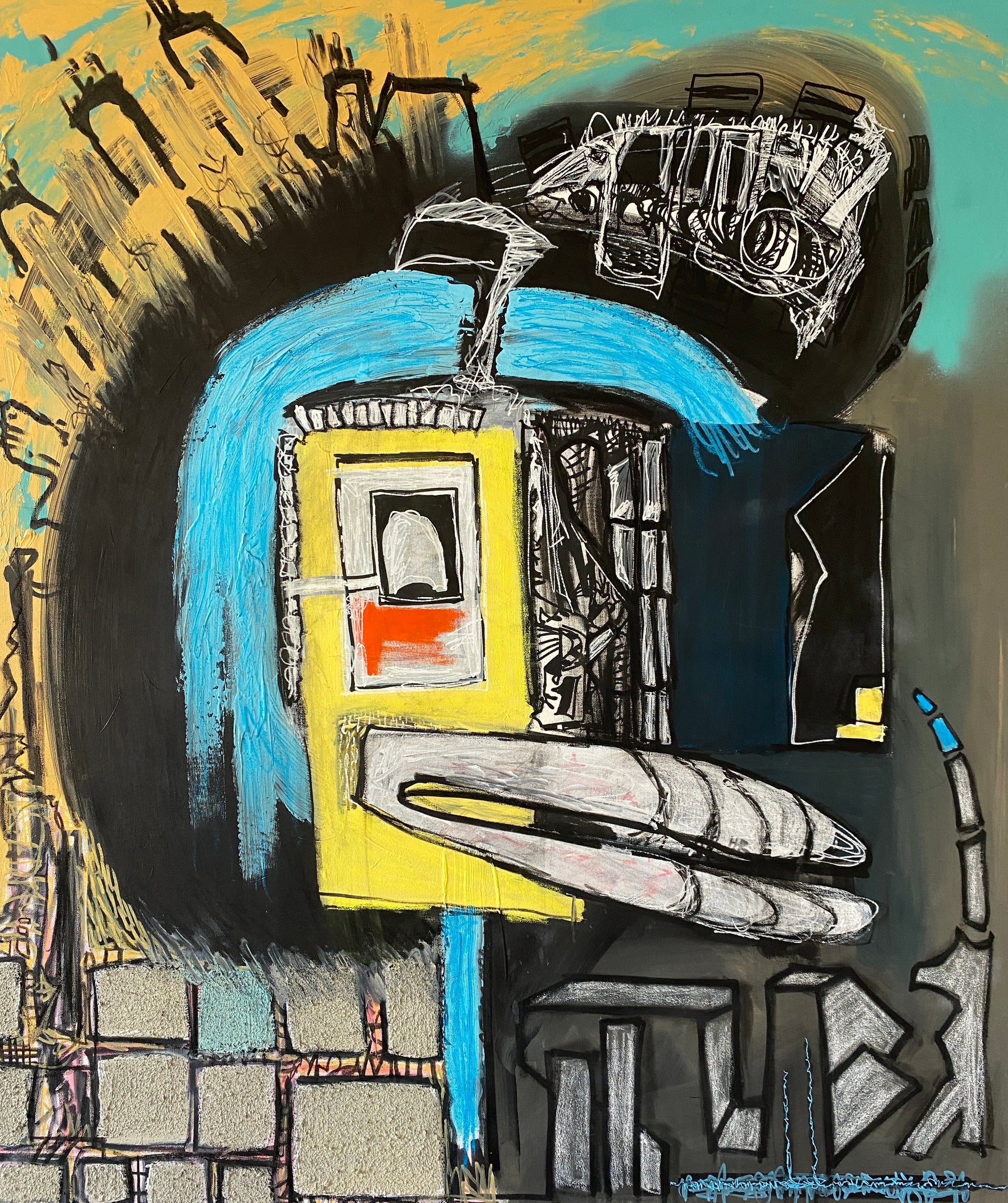 This HHR ‘Globe Head’ measures 110cmx120cm and is made with acrylic paint and marker, spray paint, eraser liquid and soft pastel. It is in my ‘HHR Copying HHR’ Collection as it is a variant of the Orginal Painting titled ‘Light Bright Head’ (see photo no 2). This variant is numbered [1/2] which means 1/ for the Orginal painting and /2 for the second original variant.