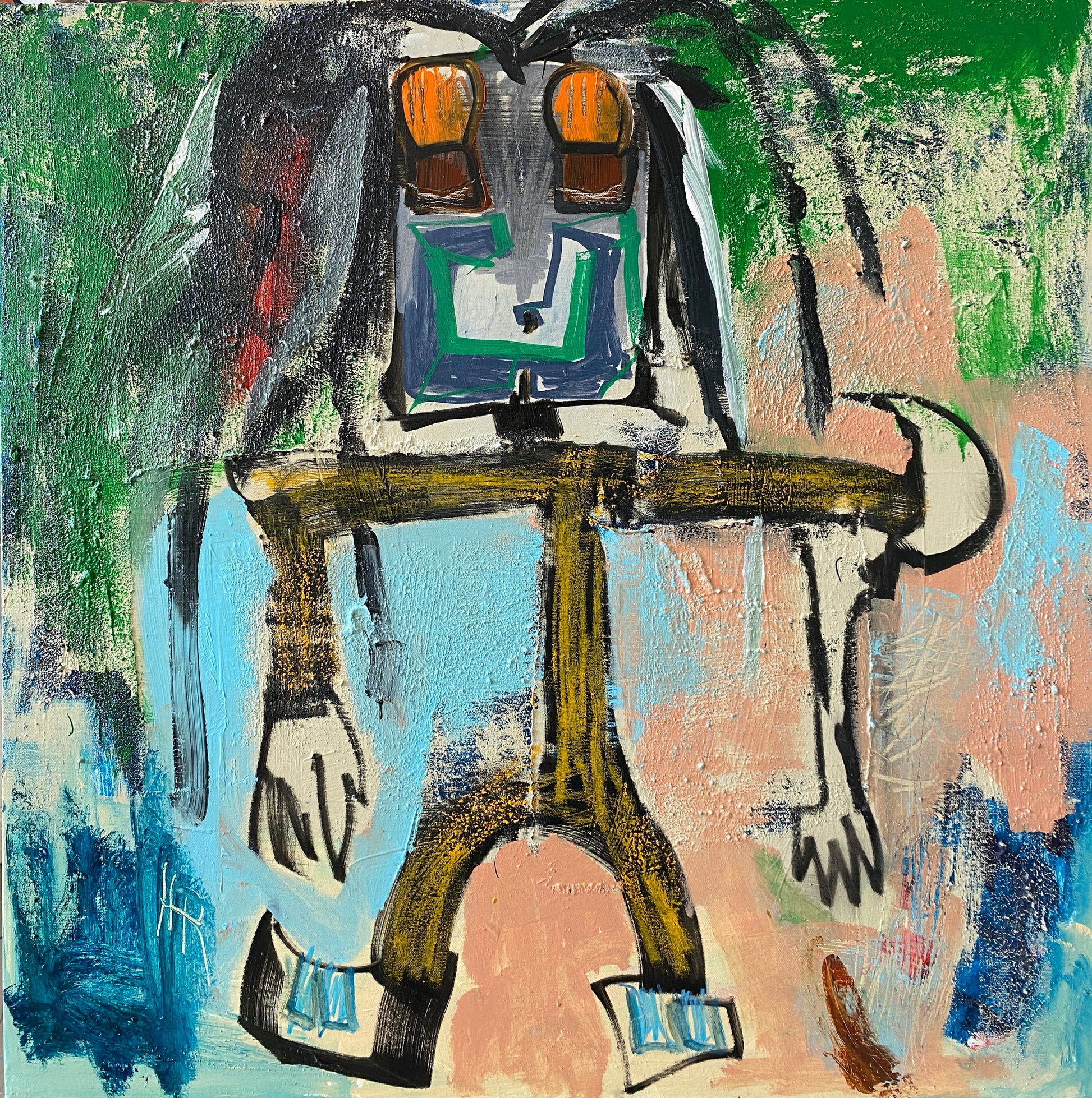 Currently not for sale ! This pai ting measures 80cm x 80cm on canvas. It’s made with acrylic paint, acrylic marker, oil stick, sand and glossy varnish. This painting is a 13 minutes Rehearsal Painting on a pre-prepped canvas for the HHR Live Painting Show to Live Poetry Performance by Abèling Raastoff at Galleri JALOCH, Lyngby, in July 2024. It was painted at a loft room in Copenhagen practicing to poetry by Abèling over the loud speakers. (See the painting done at the HHR Live Painting Show on photo no 2)