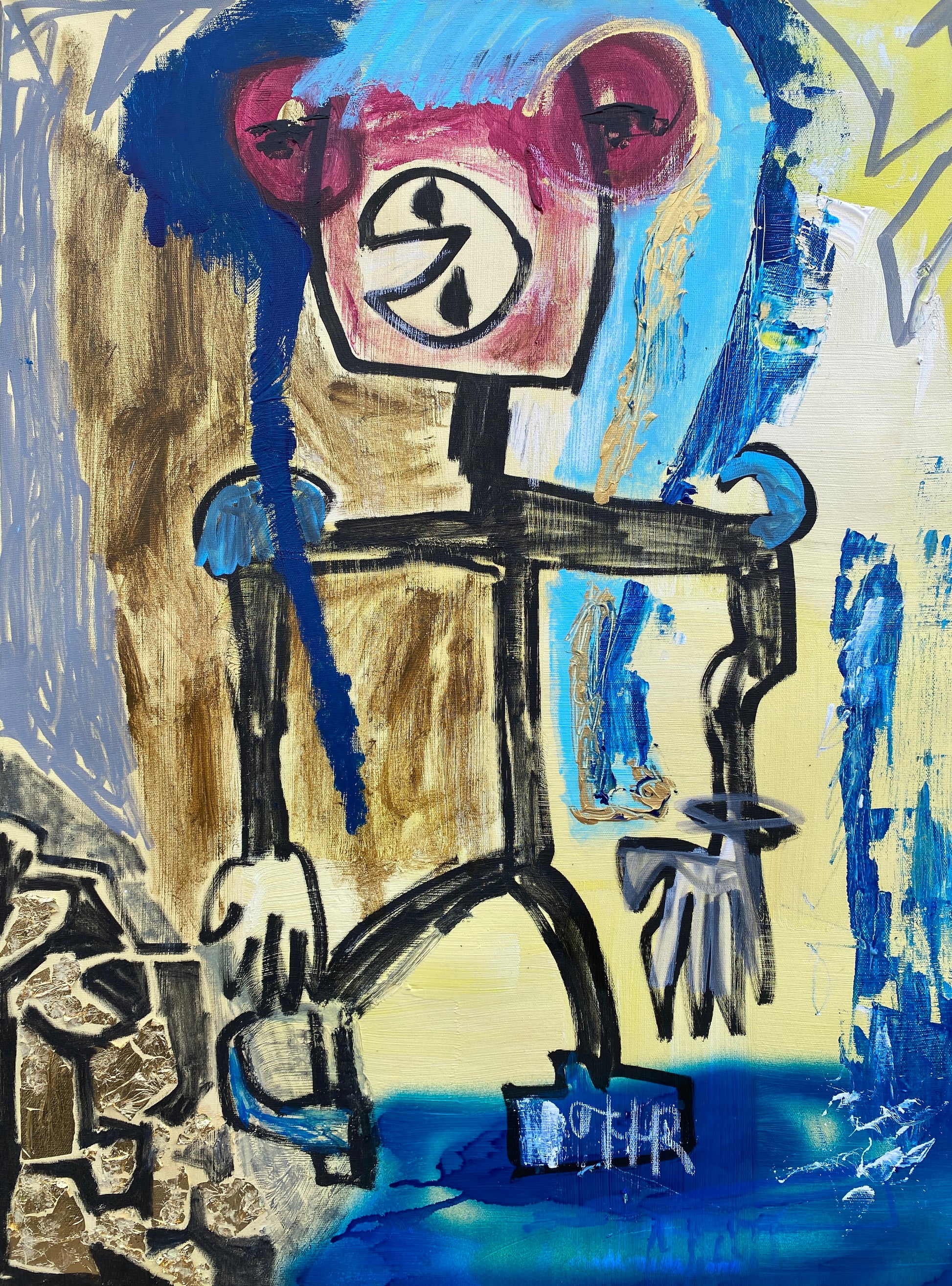 Currently not for sale ! This ‘Rehearsal Painting‘ 60cm x 80cm was done on a pre-prepped canvas with acrylic paint, gold leaf and acrylic marker. It was made in 8 min using acrylic paint, acrylic marker, oil pastel and eraser liquid as a training for the HHR Live Painting Show to poetry performance by Abèling Raastoff in Galleri JALOCH, Lyngby, July 2024.